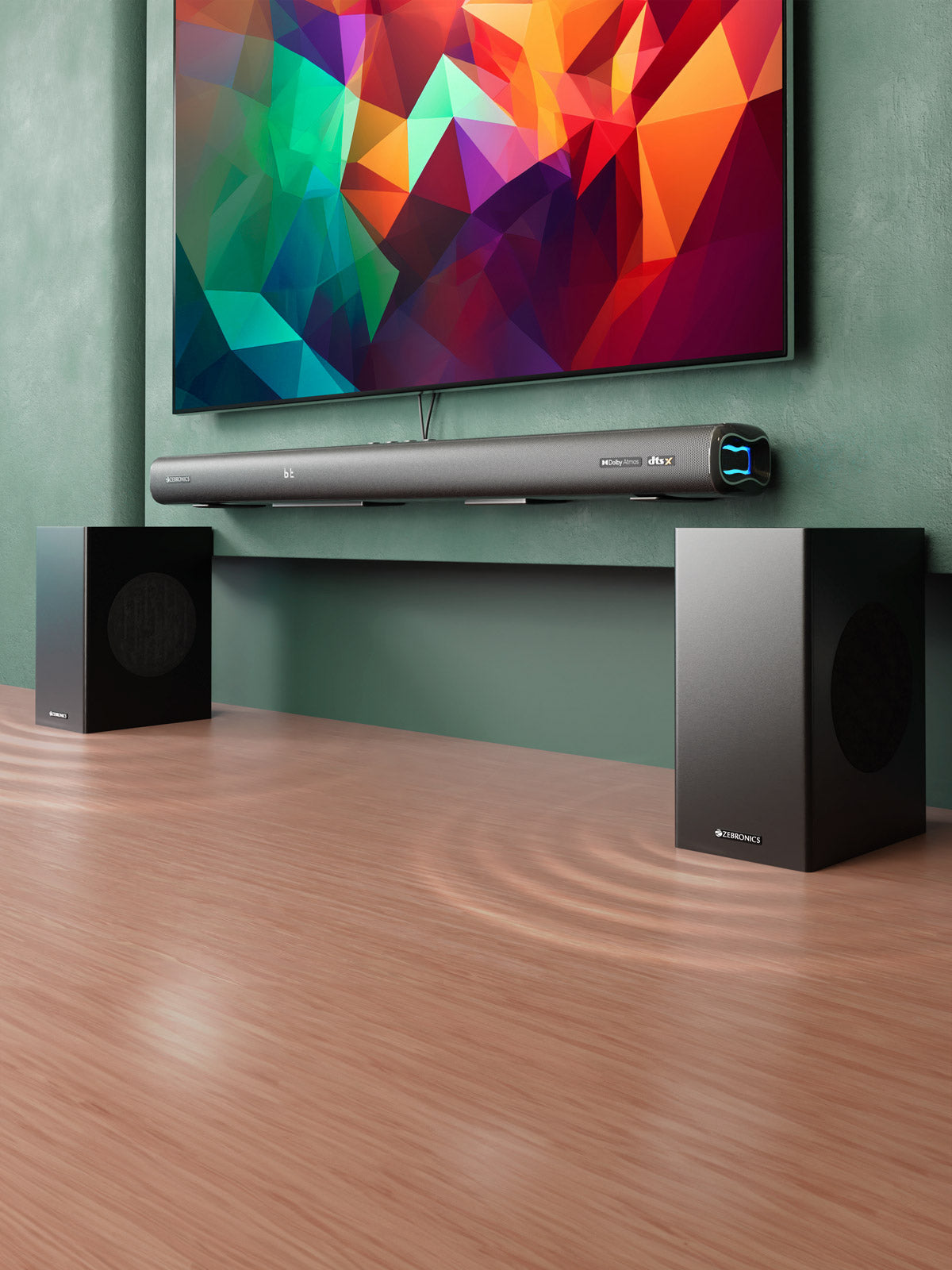 Dual Wireless Rear Satellites of 100W each (front & top firing drivers) – whether its the rustle of leaves, footsteps approaching or the ambiance of a distant cityscape, these play a pivotal role in adding a vertical dimension to the audio.