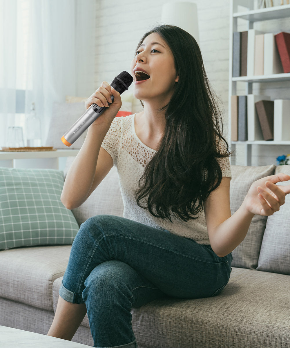 Enjoy. night-long karaoke with your friends & family with a bundled UHF Wireless Mic along with full function remote control to adjust volume, bass, treble.